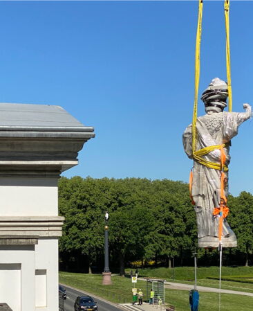 "En uit het Museum Kurhaus Kleve (Kleef) komt de indrukwekkende Pallas Athene terug naar Amsterdam", so wird eine Ausstellung im Königlichen Palast angekündigt. Heute wurde sie abgeholt.