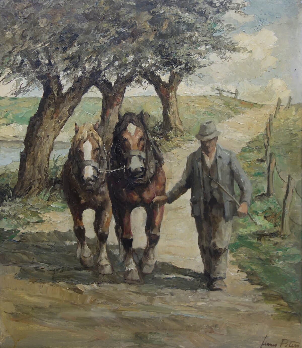 >> Mehr zu Manes Peters - Bauer mit zwei Pferden, 1950 / MKK Inv.2006-04-03, Schenkung der Elefanten Schuh GmbH. Kleve