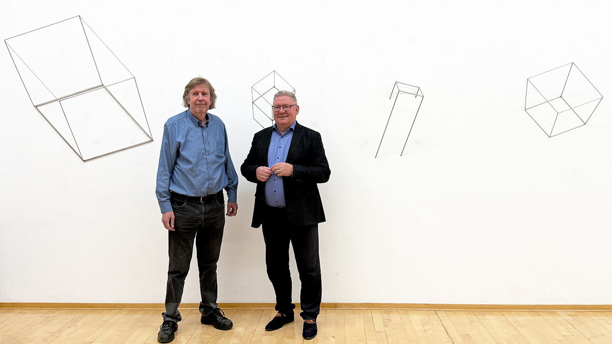 Vier Möglichkeiten, sich einen "Zins" nach Hause zu holen, eine dieser filigranen Stahlplastiken, die Körper zeigen, deren Volumina nur in unseren Köpfen „körperhaft“ sind, nur dort so sind, wie sie scheinen. Der Klever Künstler Günther Zins spielt mit unserer Wahrnehmung und der Klarheit geometrischer Linien, die im Vorübergehen zu eben diesen "Zins-Körpern" werden.