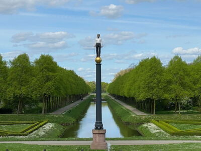 Seit 2004 steht der Neue Eiserne Mann von Stephan Balkenhol an einem zentralen Punkt der barocken Gartenanlagen.
