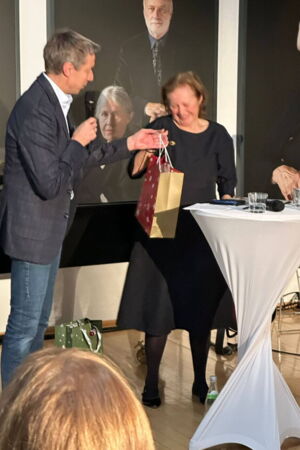 Unter dem Engel von Ewald Mataré erklangen Instrumentalstücke für drei Querflöten, vorgetragen von Lena Rütten und Hanna Wolf, Schülerinnen der Musikschulen des Kreises Kleve aus der Klasse von Frigge Wiederhold-Walter. In Vertretung von von Ursula Geisselbrecht-Capecki wurden im Anschluss die Neuerwerbungen des letzten Jahres für das B.C. Koekkoek-Haus durch Jutta Tönnissen vorgestellt.