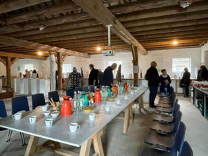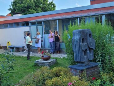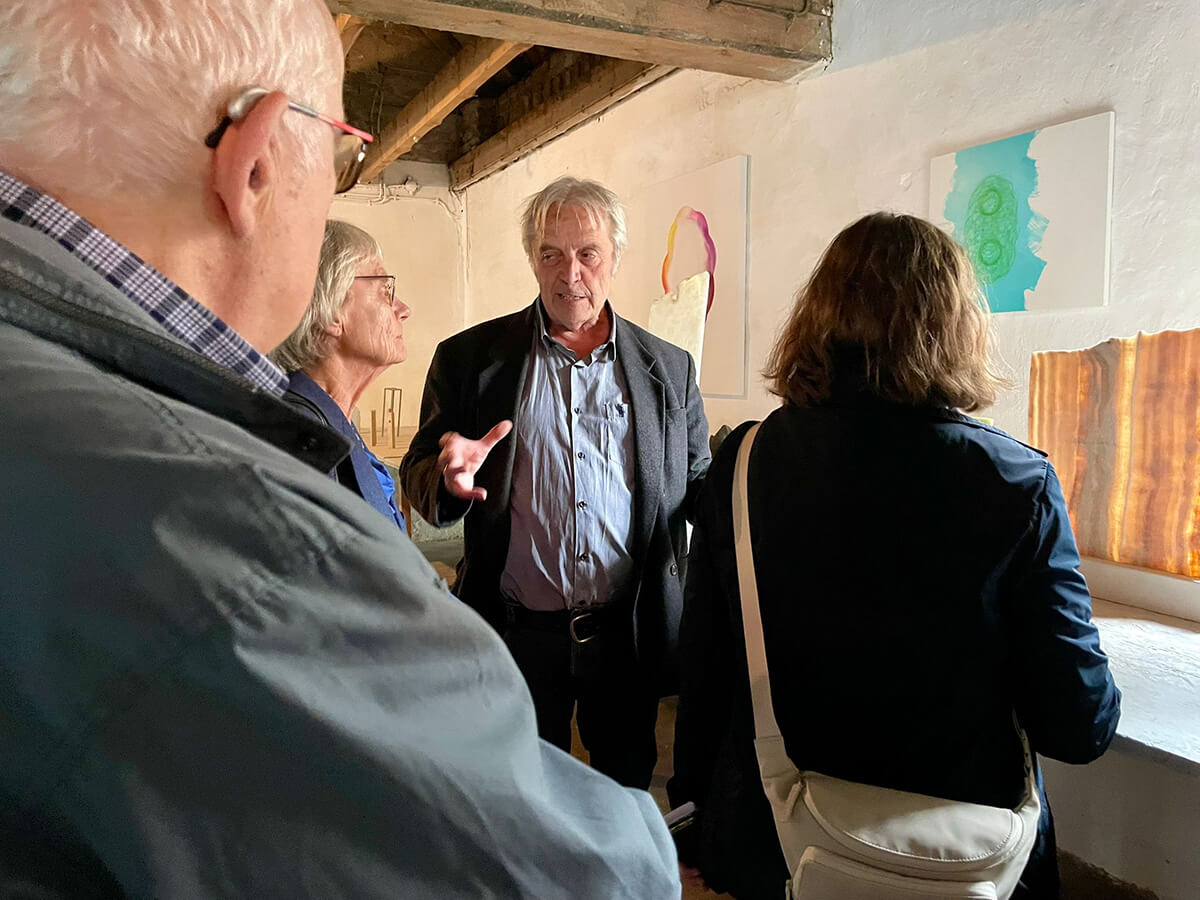 Dr. Theo Siegert erzählte von seinem Spaziergang mit Guido de Werd, aus dem sich die heutige Nutzung des Hauses der Familie Mataré entwickelte, das seit 2022 den dHCS-Stipendiat*innen des Kunstvereins für die Rheinlande und Westfalen, Düsseldorf als Atelierhaus zur Verfügung steht.