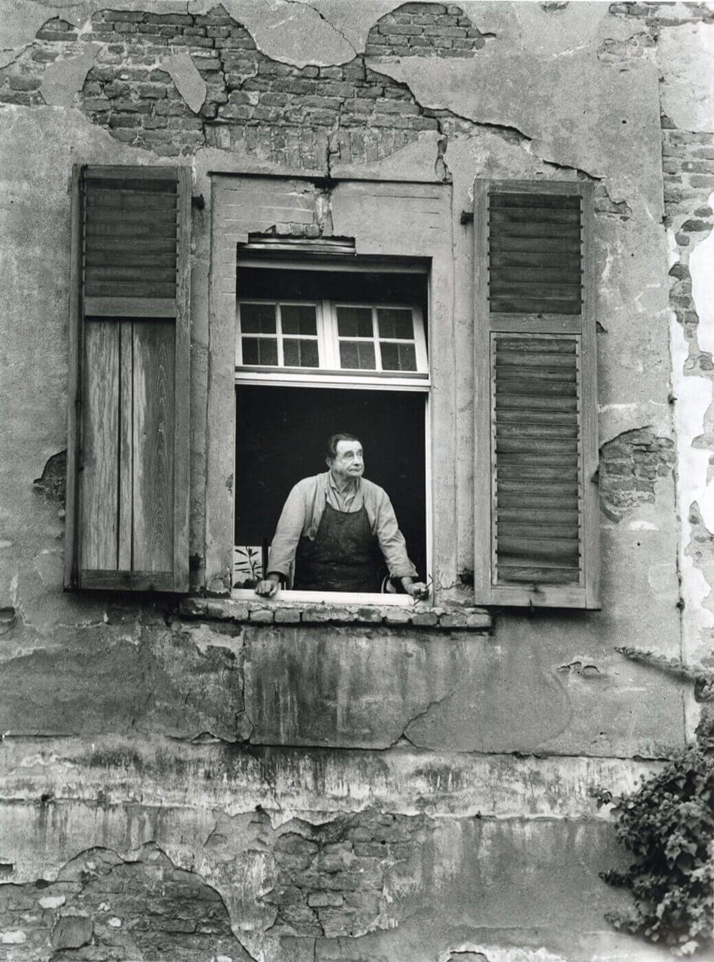 Die Fotografie von Fritz Getlinger (1911 - 1998) zeigt Hanns Lamers dort - aus dem Fenster schauend - im Jahr 1963 (MKK Inv.1994-01-03 / Nachlass Fritz Getlinger, Schenkung aus dem Nachlass des Künstlers).