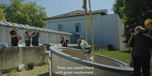 Auf der Seite des MKK gibt es Bilder von der Rückkehr der Skulptur nach Kleve. Sie zeigen, wie Pallas Athene "vom Himmel" durch ein rundes Dachfenster in die Säulenhalle des Museums, das 1994 noch eine große Baustelle war, schwebte.