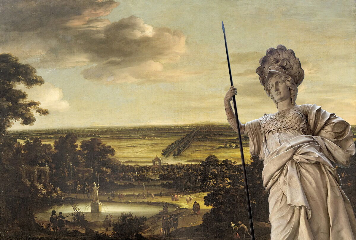 Pallas Athene / Minerva, die Artus Quellinus im Auftrag der Stadt Amsterdam fertigte, wurde von der Stadt Amsterdam dem brandenburgischen Statthalter in Kleve, Johann Moritz von Nassau-Siegen, als Brunnenfigur für seine Gärten geschenkt.