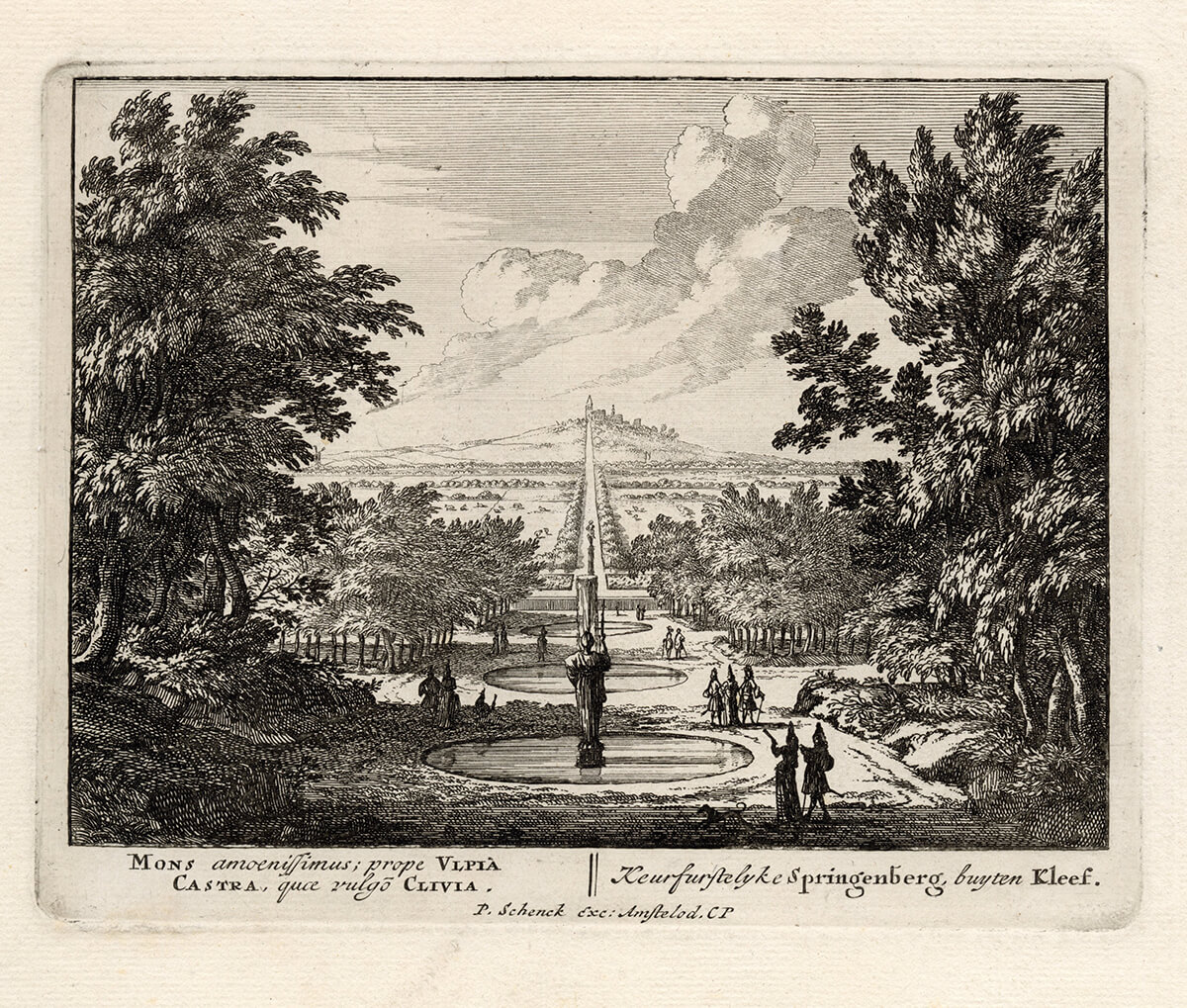 Die Grafik von Jan van Call zeigt die Platzierung der Skulptur in der Sichtachse nach Hochelten.