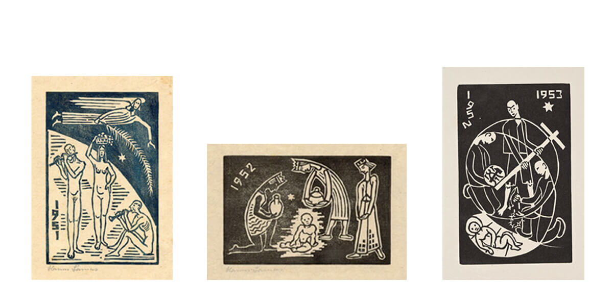 In den ersten Jahren prägen christliche Themen diese Jahresschnitte: die Heilige Familie (1947), die Heiligen Christophorus (1948) und Martin (1949), Hirten auf dem Feld (1950/51), die Heiligen Drei Könige (1951/52). Später ergänzt Hanns Lamers die Flucht nach Ägypten (1954/55) und Weihnachtsszenen mit Hinweise auf den Kreuztod Christi (1952/53; 1956/57).