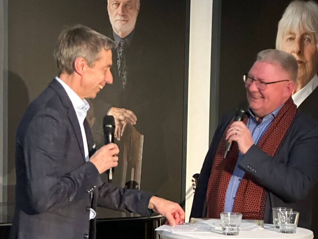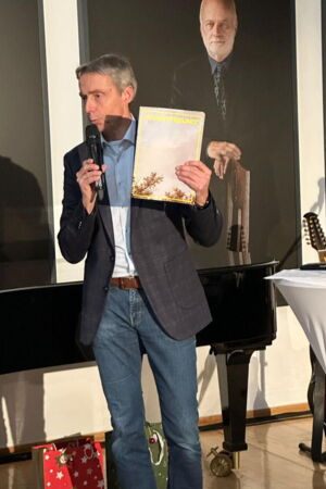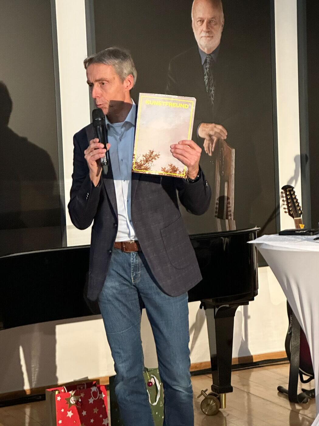 Wie jedes Jahr trafen sich die Mitglieder des Freundeskreises zur Weihnachtsfeier im Museum Kurhaus. Zur Begrüßung gab es am 5.Dezember einen Becher Glühwein in der Lounge. Anschließend moderierte Willi Röth in der Wandelhalle Gespräche mit den Museumsleitern: Ein Blick auf das vergangene und das kommende Jahr in den beiden Museen, die Bedeutung der ehrenamtlichen Mitarbeit in vielen Bereichen sowie Musikgenuss (dargeboten von Frank Mehring und Dennis Meivogel aus dem Vorstand) bildeten das Programm, dem geselliges Miteinander im Friedrich-Wilhelms-Bad folgte, vom Team des Café Moritz mit kleinen Köstlichkeiten begleitet.