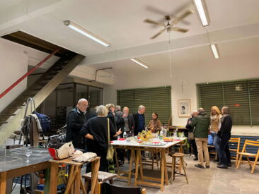 Dr. Theo Siegert erzählte von seinem Spaziergang mit Guido de Werd, aus dem sich die heutige Nutzung des Hauses der Familie Mataré entwickelte, das seit 2022 den dHCS-Stipendiat*innen des Kunstvereins für die Rheinlande und Westfalen, Düsseldorf als Atelierhaus zur Verfügung steht.